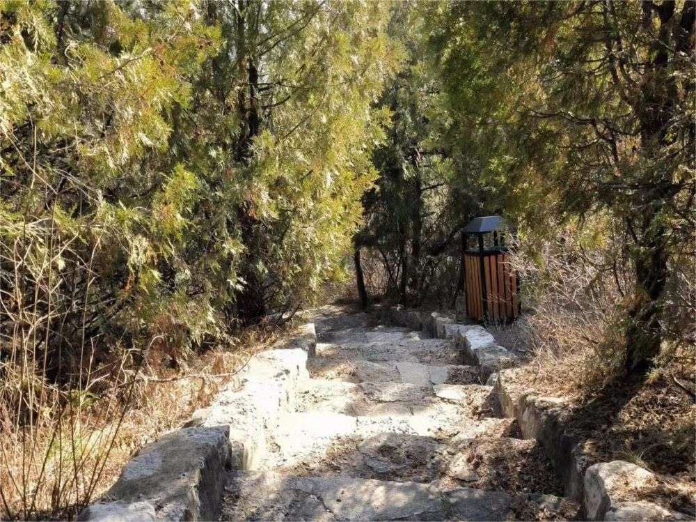 在山腳下拍照打卡完后,同學們在班長的帶領(lǐng)下,進行了簡單的熱身運動和安全培訓(xùn)。隨后,大家沿著蜿蜒的山路臺階,開始了攀登之旅。剛到山腳下時,涼風習習,落葉紛飛。二龍山不算高,但爬起來卻十分消耗體力,山路上的石板并不平坦,每一節(jié)石板很高,走起來總覺得不穩(wěn)當,容易摔倒。一路上雖然坎坷難行,但山林空氣卻使人感到特別清爽怡人,大家興趣盎然,爭先恐后,山林間回蕩著我們的笑語。