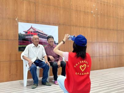 小分隊(duì)利用手機(jī),將天安門作為背景,邀請(qǐng)老人坐在椅子上。老人們笑容滿面,眼中閃爍著期待。隨著快門輕響,一張張“親臨”天安門的照片定格美好瞬間。
