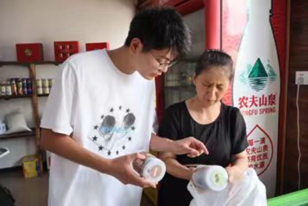 圖為土特產(chǎn)店老板向團(tuán)隊(duì)成員介紹當(dāng)?shù)剞r(nóng)戶(hù)自產(chǎn)山核桃產(chǎn)品時(shí)的場(chǎng)景。