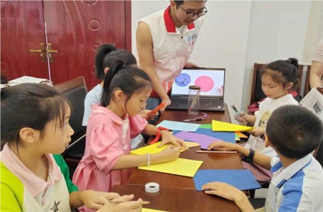 “‘圾’時(shí)分類綠色童行”以環(huán)境保護(hù)與公民責(zé)任為主題,通過(guò)實(shí)地示范,教導(dǎo)兒童正確的可持續(xù)生活習(xí)慣。志愿者們與孩子們一起動(dòng)手實(shí)踐,將廢棄物品作為材料創(chuàng)作成衣物,培養(yǎng)了他們的環(huán)保意識(shí)和想象力,現(xiàn)場(chǎng)氣氛活躍。