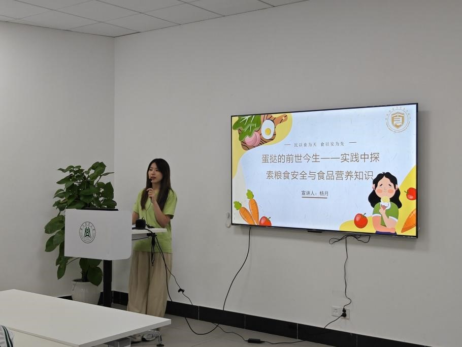 活動伊始,中國行博士團(tuán)在新工科大樓120會議室開展以“蛋撻的前世今生——實(shí)踐中探索糧食安全與食品營養(yǎng)知識”為主題的宣講。博士團(tuán)講師楊月闡述了糧食從農(nóng)場到餐桌的過程,讓孩子們明白每一粒糧食的來之不易,通過講解我國著名的雜交水稻之父袁隆平院士的偉大貢獻(xiàn),引出水稻育種的概念和優(yōu)點(diǎn),激發(fā)了孩子們對糧食安全的關(guān)注。緊接著,楊月介紹了食品加工的基本知識,通過講解谷物、肉類、水產(chǎn)品等的加工方式,小朋友們對食品的來源有了更清晰的認(rèn)識,明白了食品安全的重要性。