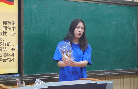 “這種像蝴蝶結(jié)一樣的面包可是德國(guó)的主食,地位等同于中國(guó)的饅頭……”這是團(tuán)隊(duì)成員姚可雨正在為墻頭學(xué)校的孩子們介紹德國(guó)美食和文化的課程,通過(guò)品嘗面包、學(xué)習(xí)德語(yǔ)單詞等促進(jìn)孩子們對(duì)不同文化的理解和尊重,認(rèn)識(shí)到世界的多樣性和豐富性。