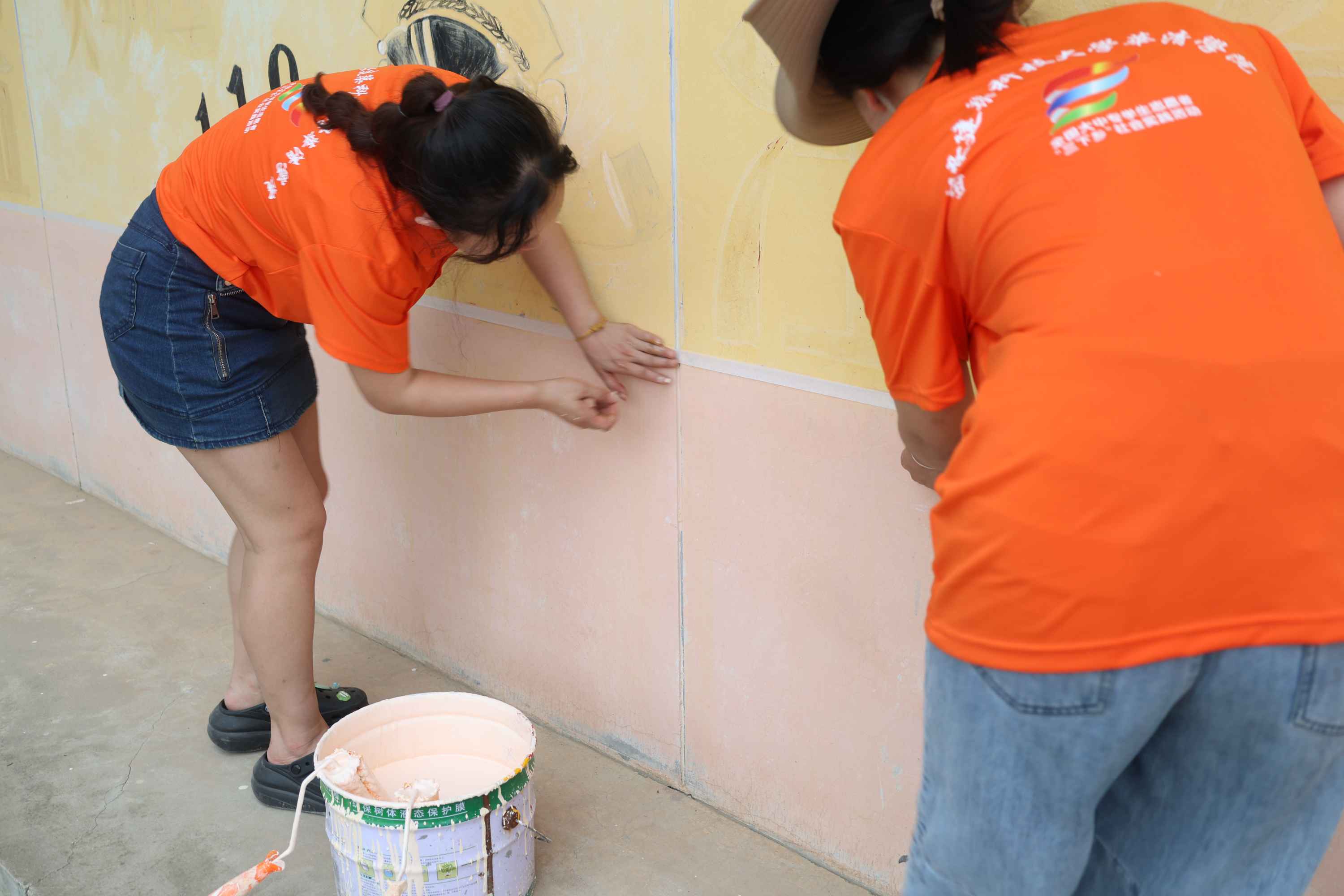 抵達(dá)目的地后,實(shí)踐團(tuán)沒有片刻停歇,立即投入到緊張而有序的工作中。首當(dāng)其沖的任務(wù)是清理墻面,這是繪制美麗圖案的前提。有的墻因?yàn)槟昃檬?,布滿了斑駁的痕跡;有的墻則因?yàn)殚L期暴露在風(fēng)吹雨打中,變得黯淡無光。面對斑駁的墻面,團(tuán)隊(duì)成員們分工明確,有的手持鏟子鏟除頑固污漬,有的則用砂紙細(xì)心打磨,力求每一寸墻面都能恢復(fù)平整光滑。汗水浸濕了衣背,但大家的臉上卻洋溢著滿足與自豪的笑容。經(jīng)過數(shù)小時(shí)的努力,原本灰暗的墻面煥然一新,為接下來的藝術(shù)創(chuàng)作奠定了堅(jiān)實(shí)的基礎(chǔ)。