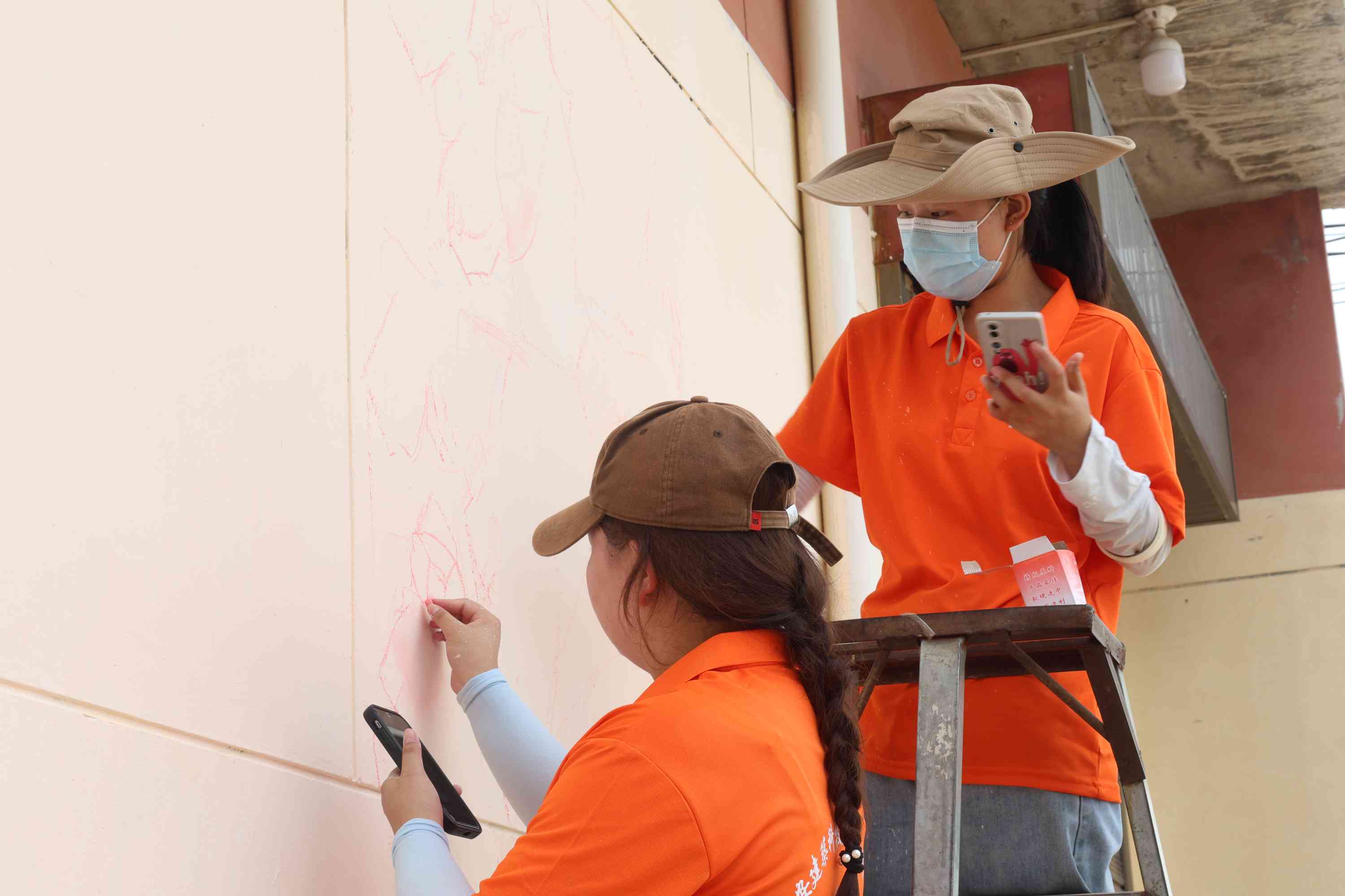 墻面清理完畢后,實(shí)踐團(tuán)正式進(jìn)入墻體美化的核心階段——初步繪制墻面線稿。團(tuán)隊(duì)成員們充分發(fā)揮專業(yè)優(yōu)勢,結(jié)合雷牙村的自然風(fēng)光、文化特色及村民的愿望,精心設(shè)計(jì)了一系列既具藝術(shù)性又貼近民生的圖案。從社會主義核心價(jià)值觀,到山水田園的詩意描繪,再到歷史文化與傳統(tǒng),每一筆都蘊(yùn)含著對鄉(xiāng)村美好生活的向往與追求。