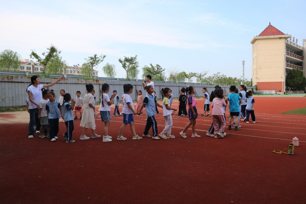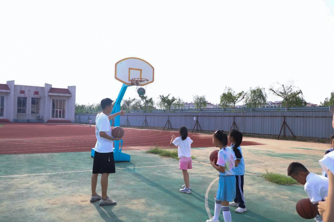 籃球躍動激情場,活力四射展風采 日暮西斜,實踐團成員劉奕辰、于萌萌帶領(lǐng)學生們來到操場,在體育課上與學生們一起進行了豐富多彩的體育活動,包括籃球的訓(xùn)練和充滿童心的游戲。“投籃時,保持身體平衡,目視籃筐,手指輕柔撥球,確?;《冗m中。”籃球場上,劉奕辰正以飽含激情的聲音指導(dǎo)著學生們打籃球。他詳細講解每個動作的要領(lǐng),從投籃到運球、傳球等,使學生們?nèi)嬲莆栈@球技巧。孩子們按照老師的指導(dǎo),不斷練習、磨礪自己,投籃技術(shù)不斷進步,團隊合作能力也得到了鍛煉?;@球場上的汗水和激情交織在一起,展現(xiàn)出青春的活力和拼搏。