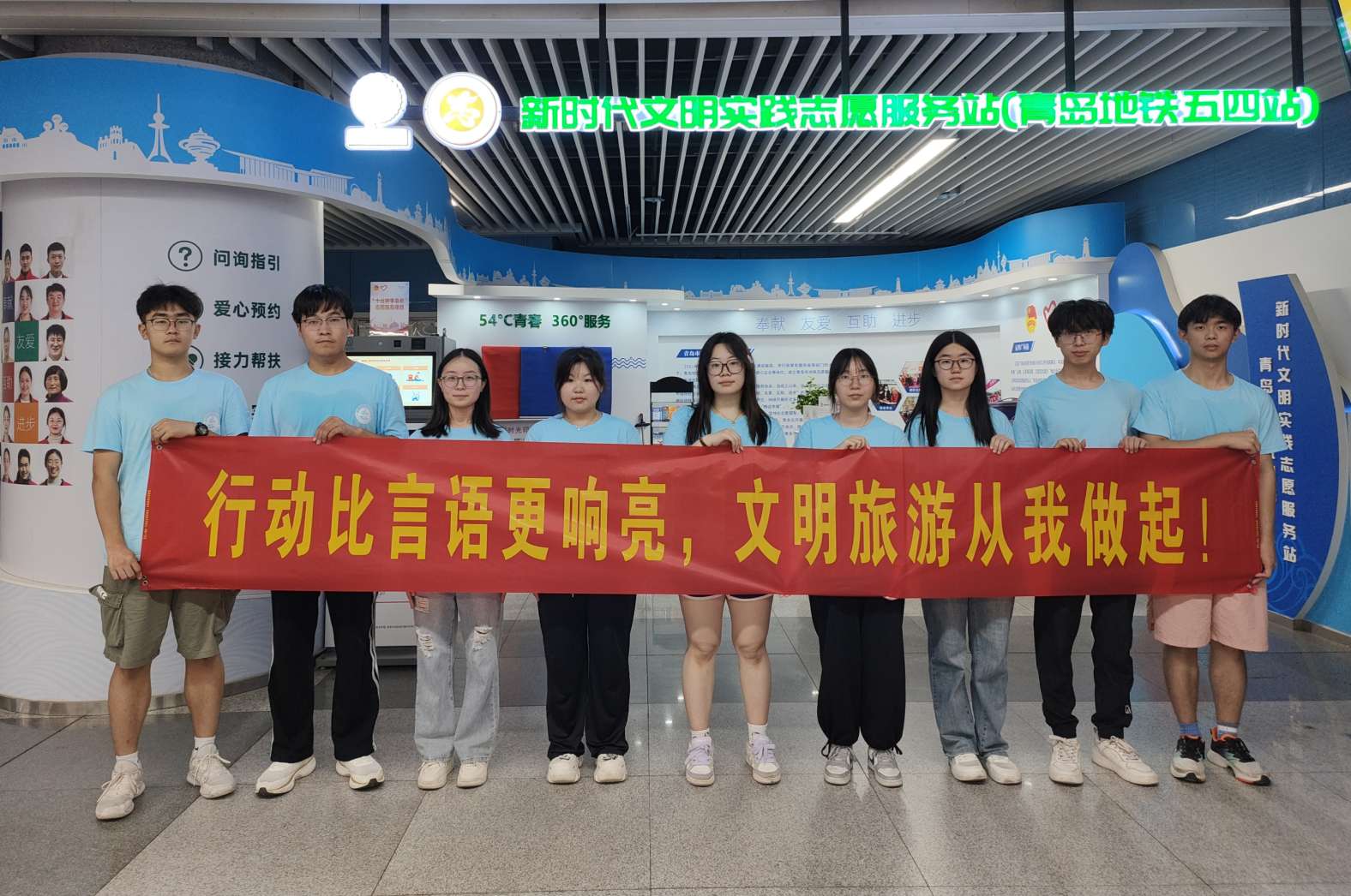 7月21日,青島科技大學赴青島市“巡禮藍海情,筑夢文明行”文明旅游實踐團在青島市多個地鐵站協(xié)助地鐵乘客安全文明出行,包括指路問詢、取票購票、進出站引導等服務。實踐團隊還對地鐵站周圍垃圾進行了收集與回收,顯著提升了公共空間的清潔度和居民的出行體驗。團隊成員以青科方式踐行社會主義核心價值觀,推動公共場所文明風尚的形成。