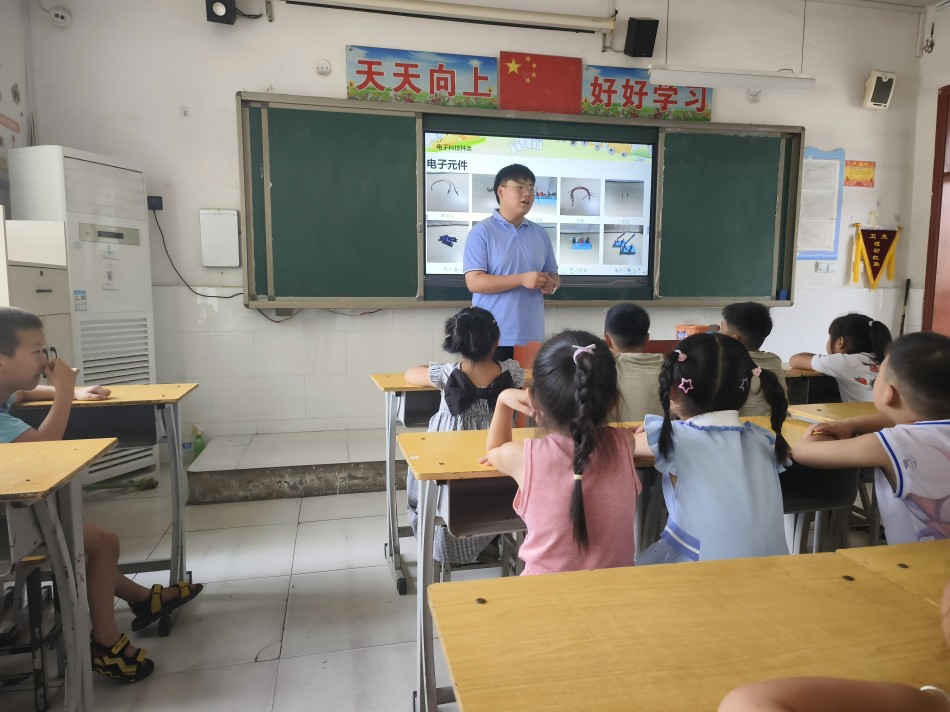 弘揚科技之光,播種希望之種。隊員們精心設(shè)計“電路科普小課堂”,向小朋友們科普電學(xué)知識,開展電學(xué)實驗。隊員們首先借助圖片和實物展示相結(jié)合的方式,用簡單易懂的語言介紹基礎(chǔ)電學(xué)知識,讓孩子們對電子元件的種類及功能有了更直觀的認識。同時,志愿者們還耐心科普生活用電安全小知識,包括插座使用、電器操作、避免電擊等方面的常識,通過有獎競答充分調(diào)動小朋友們的積極性,讓現(xiàn)場氣氛熱鬧非凡。在動手實踐環(huán)節(jié),小朋友們仔細聆聽實驗步驟和安全事項,認真進行實操演練。面對復(fù)雜的電路知識,他們迎難而上,嘗試各種新奇的電路連接方法,從點亮一個簡單的小燈泡,到熟練運用光敏電阻調(diào)節(jié)燈泡亮度,每個孩子的臉上都洋溢著自豪和喜悅之情。