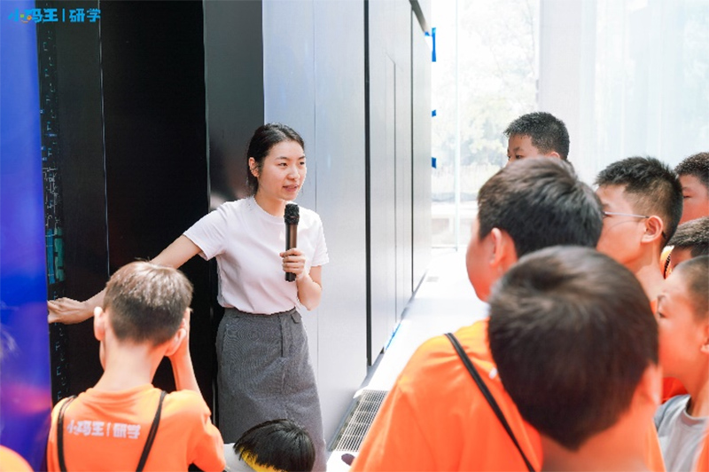 (圖為工作人員為學(xué)生介紹超算計(jì)算機(jī))