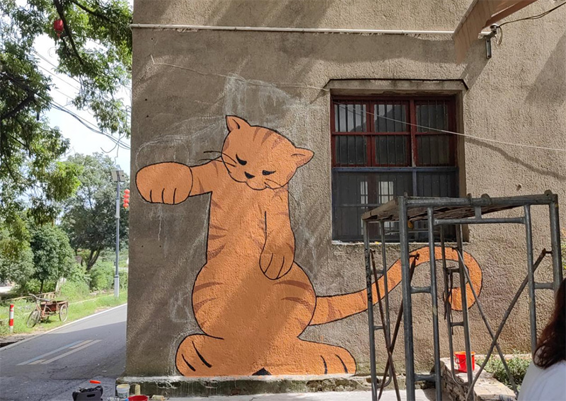 經(jīng)過八天的辛勤努力,“繪”啟六衖鄉(xiāng)村振興團隊根據(jù)村莊的特色共完成了三十六幅天路設計稿、五幅大型墻繪以及沿路數(shù)十幅小面積墻繪。這些作品不僅美化了村莊的環(huán)境,更成為了展示六衖村獨特文化魅力的重要窗口。為了響應村莊負責人的請求并增添村莊的趣味性,實踐團在村口創(chuàng)作了一幅高達2米多的互動性大橘貓墻繪,吸引了眾多游客駐足觀賞并合影留念。此外,實踐團還巧妙利用村莊中的石頭元素和建筑風格進行創(chuàng)作,將每一處細節(jié)都賦予了獨特的藝術(shù)魅力。
