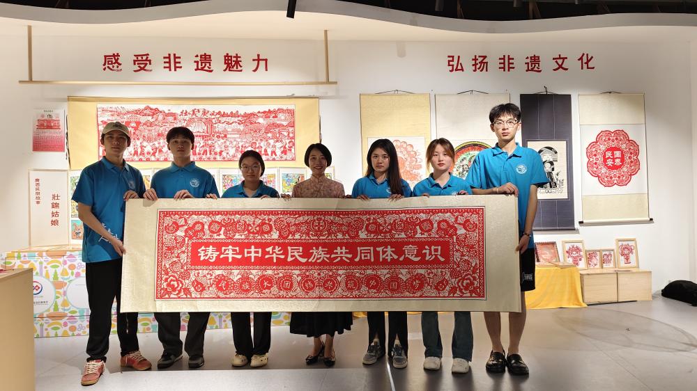 一踏入鐘老師的工作室,成員們就被墻上掛滿的精美剪紙作品深深吸引!鐘昀睿老師,這位剪紙界的藝術(shù)家,用她那雙巧手,將紅紙化作了栩栩如生的萬事萬物。其中,最引人注目的是老師的代表作——《鑄牢中華民族共同體意識》,這幅作品從畫面設(shè)計、線條布局到作品內(nèi)涵,無一不體現(xiàn)著她的匠心獨運。