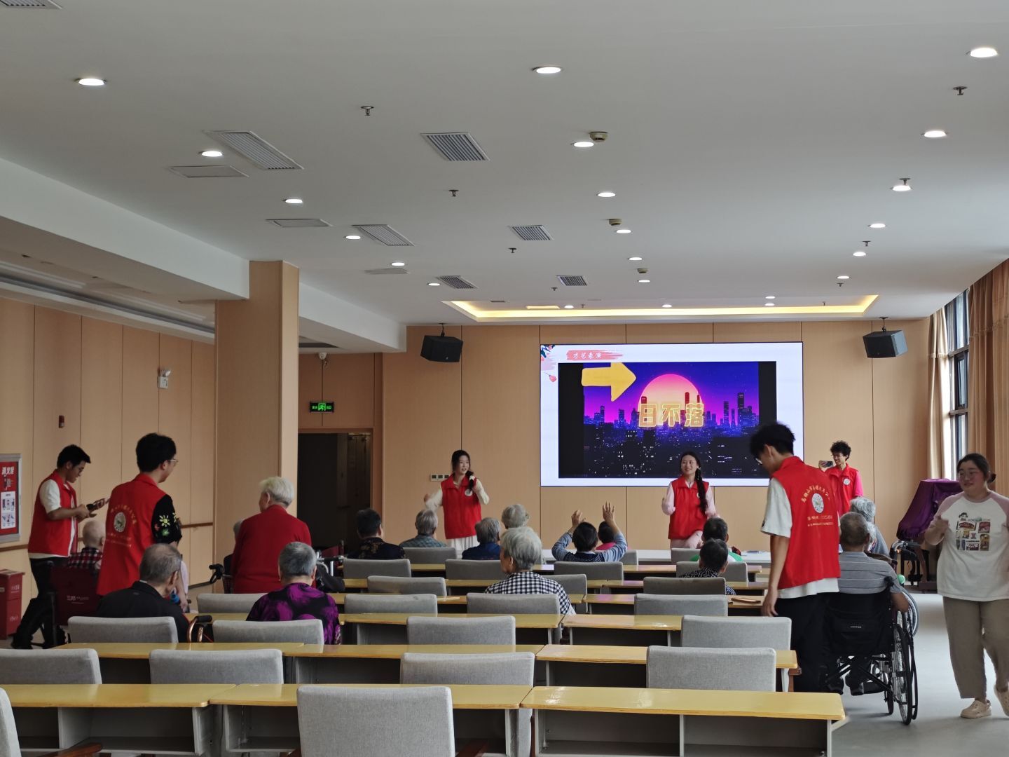 下午2點(diǎn)半到3點(diǎn)半,公寓一樓活動(dòng)區(qū)開(kāi)展大學(xué)生匯演活動(dòng)。志愿者們?cè)诜e極參與籌備活動(dòng)的同時(shí),社工部的志愿者們策劃后期活動(dòng)與打印文件資料;辦公室的志愿者們整理相關(guān)資料,排查養(yǎng)老院檔案文檔;失智專(zhuān)區(qū)的志愿者制作了彩紙小卡,用通俗易懂的方式傳播著專(zhuān)業(yè)知識(shí),讓老人簡(jiǎn)單了解英語(yǔ)的魅力。這些準(zhǔn)備使得下午的活動(dòng)開(kāi)展的井然有序,養(yǎng)老院的老人對(duì)活動(dòng)也給予了高度的評(píng)價(jià),活動(dòng)現(xiàn)場(chǎng)妙趣橫生。