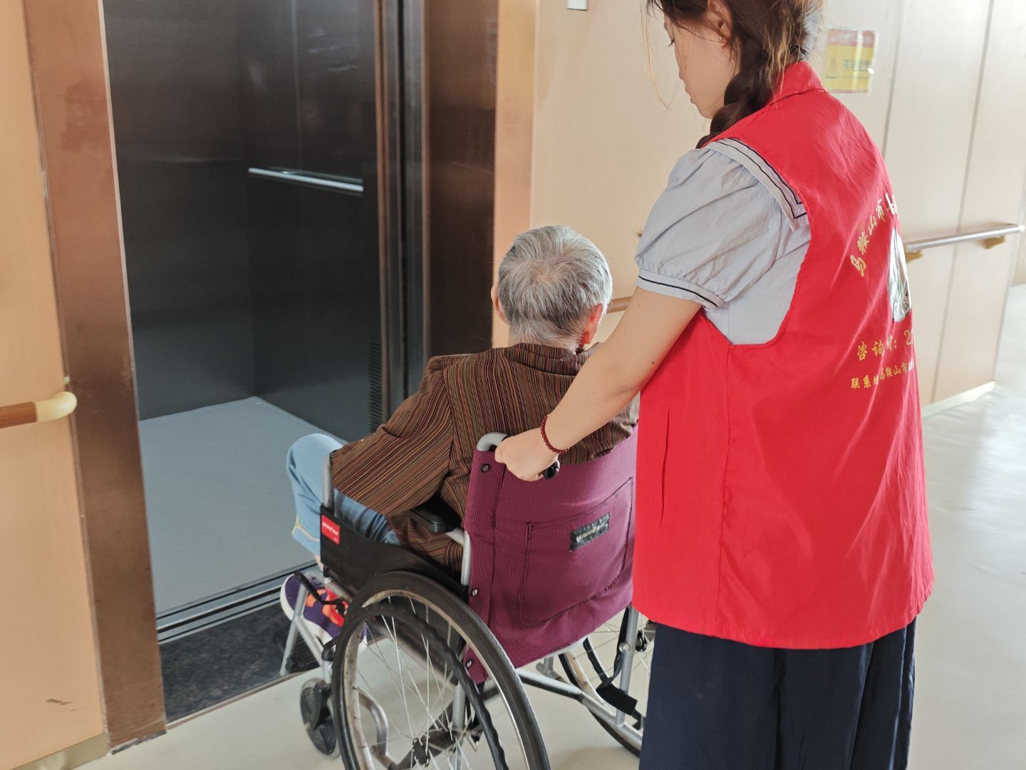 6月26日,安徽工業(yè)大學(xué)外國(guó)語(yǔ)學(xué)院“夕陽(yáng)紅”養(yǎng)老院志愿隊(duì)來(lái)到了安徽馬鞍山市善德老年公寓,在公寓負(fù)責(zé)人的介紹指導(dǎo)下,開(kāi)始了收獲頗豐的志愿之行。上午9點(diǎn),考慮到養(yǎng)老院老人的整體身體狀況,隊(duì)伍13人主動(dòng)提出以2-3人組隊(duì)行動(dòng)的方式前往善德老年公寓各層,將各層行動(dòng)不便的老人接到一樓活動(dòng)區(qū)。安工大學(xué)子熱心幫助需要幫助的老人。主動(dòng)幫老人推輪椅、引路、攙扶老人、詢(xún)問(wèn)老人狀況......這些暖心的舉動(dòng),有效的助力了養(yǎng)生操活動(dòng)的開(kāi)展。