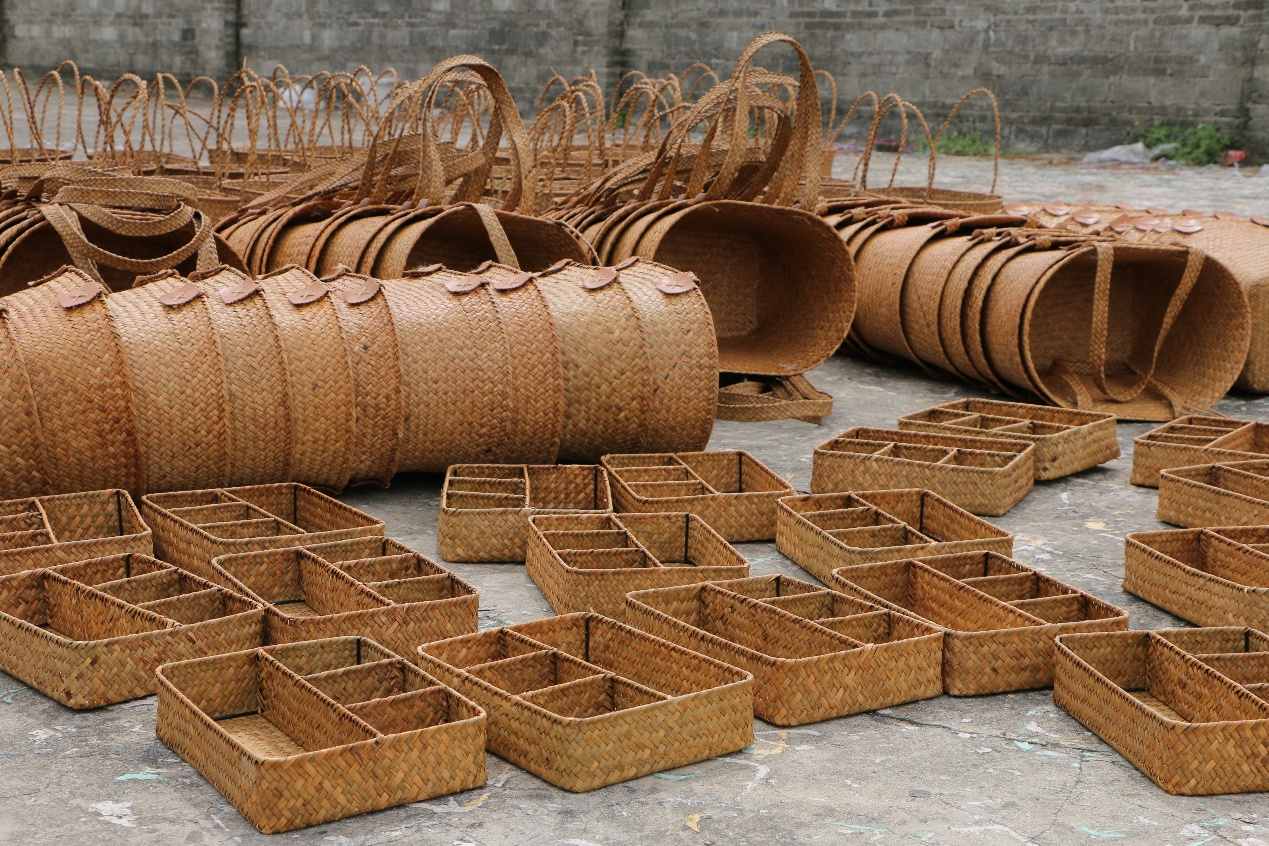 在編織區(qū),工人專注產(chǎn)品的場(chǎng)景映入眼簾,一挑一壓間,質(zhì)樸的蒲草化作精致籃筐。同學(xué)們近距離
