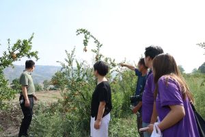 在臨潼區(qū)榮村石榴種植基地,實踐團跟隨當(dāng)?shù)卮迕褡哌M石榴園。村民熱情相迎,引領(lǐng)著實踐團穿梭其中,娓娓道來石榴從種植到銷售的點點滴滴。在村民的介紹中,實踐團了解到了臨潼石榴種植銷售的情況。