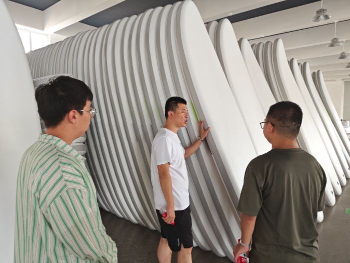 進(jìn)入公司,研發(fā)部部長(zhǎng)熱情接待隊(duì)員們并主持座談會(huì)。隊(duì)員們?cè)敿?xì)匯報(bào)了大學(xué)生創(chuàng)新創(chuàng)業(yè)訓(xùn)練計(jì)劃項(xiàng)目“充氣式槳板的力學(xué)性能研究”的研究?jī)?nèi)容,重點(diǎn)介紹了通過(guò)結(jié)構(gòu)優(yōu)化提升槳板抗沖擊性的實(shí)驗(yàn)數(shù)據(jù)與模擬結(jié)果。企業(yè)技術(shù)團(tuán)隊(duì)對(duì)項(xiàng)目的前沿性和實(shí)用性表示肯定,認(rèn)為其研究方法可為產(chǎn)品耐候性改進(jìn)提供參考。雙方就材料復(fù)合工藝、膠層附著力測(cè)試等具體問(wèn)題展開(kāi)討論,并約定后續(xù)開(kāi)展聯(lián)合實(shí)驗(yàn)。