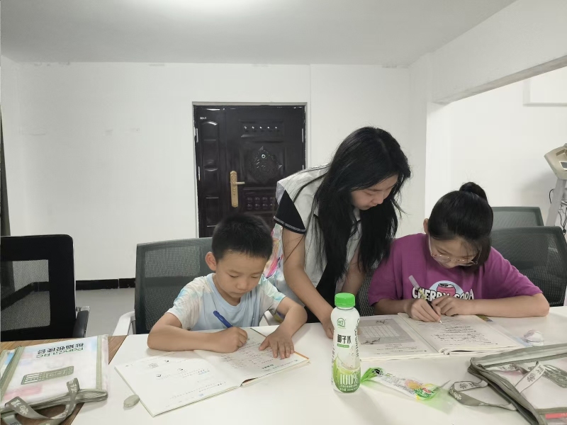 每天早上8點半,20余名小學生都會準時來到托管班,有序坐在課桌前準備學習。實踐隊員們提前了解每個孩子的年齡和學業(yè)水平,量身制定了“一對一”與“小組制”相結合的輔導方案:針對低年級學生,志愿者們創(chuàng)新設計“趣味數(shù)學闖關”“英語字母拼讀游戲”等互動教學形式,把枯燥的知識變成有趣的游戲,激發(fā)孩子的學習興趣;對于高年級學生,則重點指導他們梳理解題思路、總結學習方法,幫助他們養(yǎng)成自主學習的習慣。