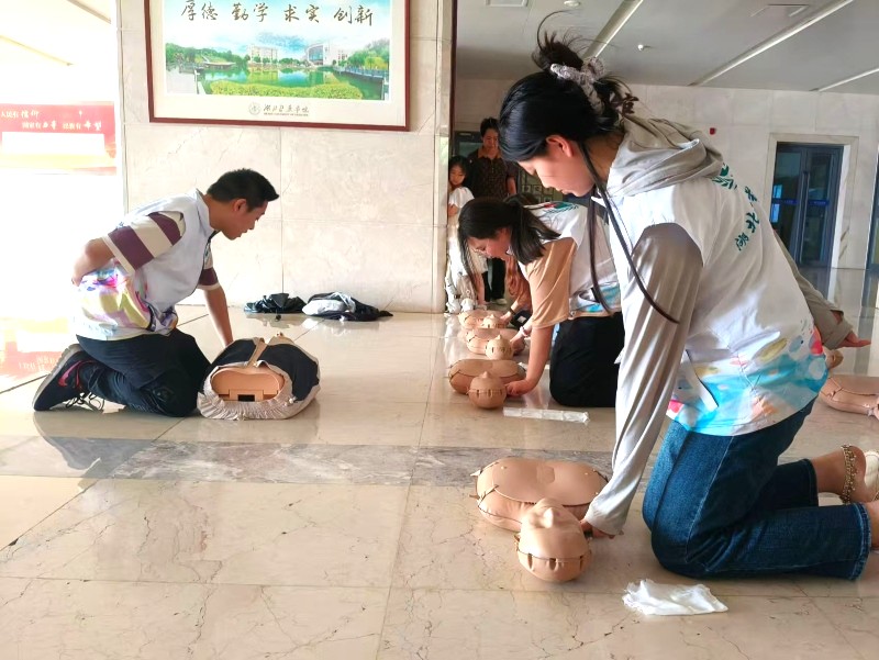 “黃金四分鐘是生命倒計時的分秒必爭!”在“萬眾醫(yī)心”實踐隊隊長胡俊炎的講解聲中,急救模型前圍起層層求知的人墻。