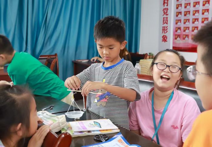 “不識(shí)秤花,難以當(dāng)家。”桿秤作為中國傳統(tǒng)衡器,是公平與精準(zhǔn)的象征。團(tuán)隊(duì)以筷子為秤桿、瓶蓋為秤盤、橡皮泥為秤砣,指導(dǎo)孩子們制作微型桿秤。通過調(diào)節(jié)支點(diǎn)位置和砝碼重量,學(xué)生們發(fā)現(xiàn)“秤砣雖小壓千斤”的杠桿原理。老師將桿秤與現(xiàn)代農(nóng)業(yè)結(jié)合:“現(xiàn)代智能秤能精準(zhǔn)測(cè)量糧食水分,幫助農(nóng)民賣個(gè)好價(jià)錢。”學(xué)生們興奮地說:“我家的稻谷以后也要用科學(xué)方法稱重!”