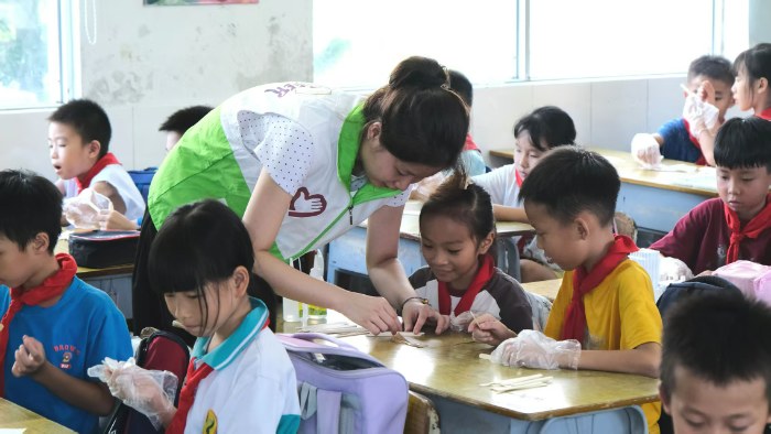 該團(tuán)隊講師通過“每2秒就有動物因塑料而死”的實例,把抽象的環(huán)保概念變成孩子們能理解的具體認(rèn)知。隨后,還科普了一些在日常中可以減少浪費的方法,并引導(dǎo)他們在布袋上自由繪畫,讓想象力為環(huán)保增添色彩。