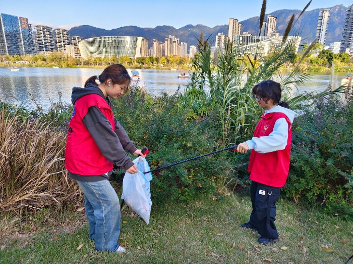 活動當天,支部成員與臺胞青年志愿者一同抵達晉安湖畔,在“惠容微家”志愿服務中心專業(yè)志愿者的指導下,系統學習了生態(tài)環(huán)保知識和河道垃圾分類清理技巧,為后續(xù)實踐活動筑牢基礎。隨后,支部成員聯合臺胞朋友分成若干小組,開展了以“護河愛水,清潔家園”為主題的環(huán)保實踐,重點整治白色污染與沿岸廢棄物?;顒游猜?,支部成員與志愿者們齊聚鼓山鎮(zhèn)志愿服務驛站,面向志愿旗幟莊嚴宣誓,鏗鏘有力的誓詞彰顯了志愿者們踐行志愿精神、守護生態(tài)環(huán)境的堅定決心。