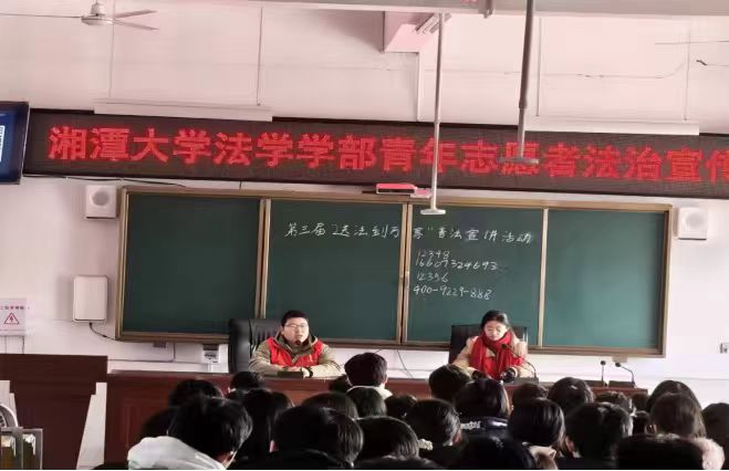 為增強(qiáng)青少年法治意識(shí),筑牢校園安全防線,2026年1月23日,湘潭大學(xué)七星普法隊(duì)在馬鬃嶺鎮(zhèn)司法所支持下,攜手馬鬃嶺鎮(zhèn)中學(xué)成功舉辦“守護(hù)青春,向違法犯罪說不”主題普法宣講,為第三屆“送法到萬家”活動(dòng)增添生動(dòng)實(shí)踐。