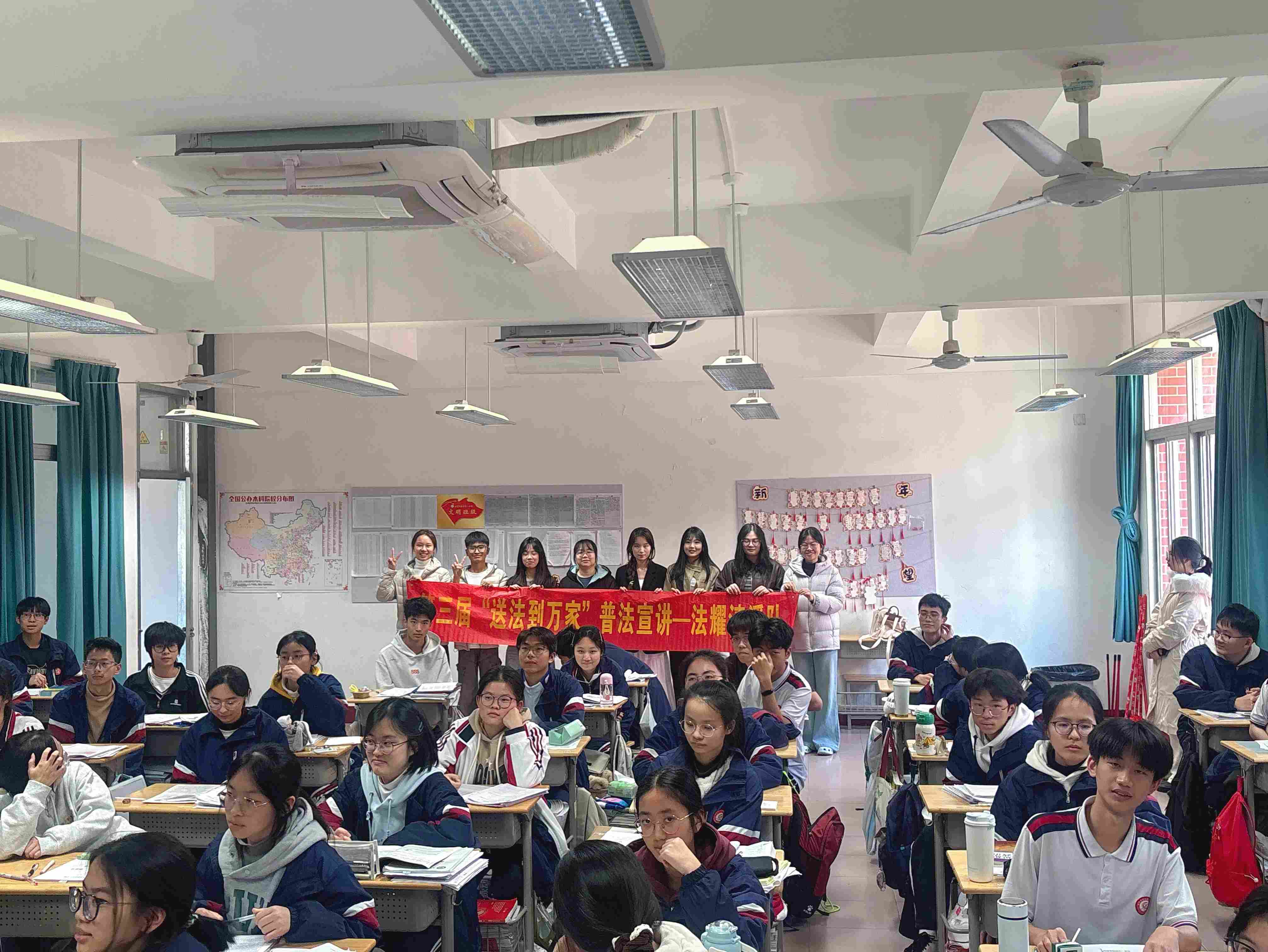 2026年2月2日下午,第三屆“送法到萬(wàn)家”活動(dòng)走進(jìn)福建省安溪第一中學(xué),由福建省安溪第一中學(xué)高三年級(jí)老師胡越清老師主持、法耀清溪隊(duì)(由湘潭大學(xué)汪偉釗、中國(guó)海洋大學(xué)李夢(mèng)鈴、福建理工大學(xué)柯芷瀅、莆田學(xué)院吳若萱、陜西師范大學(xué)陳忻怡、、集美大學(xué)劉佳穎、廈門醫(yī)學(xué)院黃鈺琦、華北電力大學(xué)詹景墩、湖南中醫(yī)藥大學(xué)孫墁、龍巖學(xué)院蘇巖組成)開(kāi)展以《未成年保護(hù)法》為核心的普法宣講活動(dòng),吸引高二、高三共200余名師生參與。