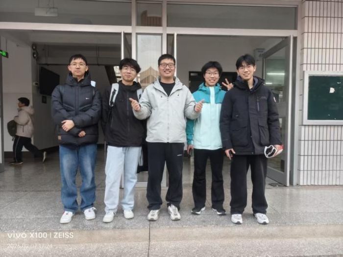 | 指導(dǎo)老師張云飛與隊伍成員在殷都區(qū)第一高級中學(xué)合影 | 隊伍成員在安陽一中門前合影 |