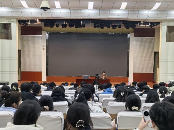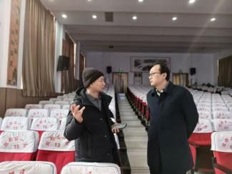 | 團(tuán)隊成員在安陽一中報告廳聽取宣講建議 | 團(tuán)隊成員與高中王老師合影并溝通 |