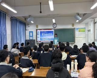 李旭同學(xué)在安陽一中宣講 | 團(tuán)隊成員與高三班主任梁老師合影 |