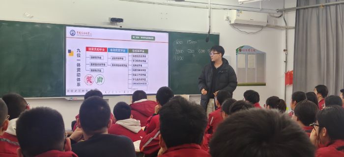 本次宣講中,申志浩結合自身親身經(jīng)歷,用樸實真摯的語言,向同學們詳細講解學校獎助學金政策,清晰說明各項獎助福利的具體內(nèi)容,讓大家直觀了解政策帶來的保障。同時,他重點介紹學校“九位一體”資助政策,全面解讀政策的多元保障體系,明確其將全方位護航同學們順利完成學業(yè),切實化解大家的資金顧慮。