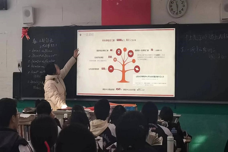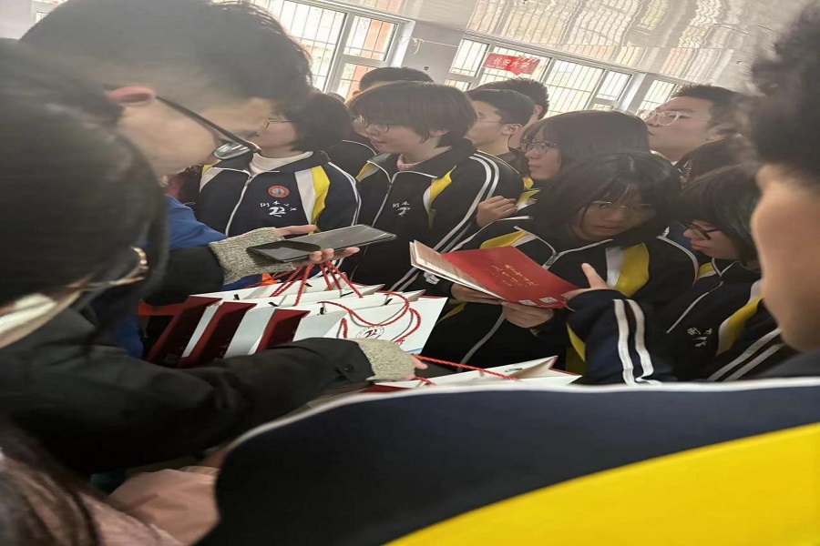 在河北正中實驗中學,李昱晨同學為學弟學妹們分發(fā)了自己精心準備的明信片與對每位同學的寄語,根據(jù)同學們的需求精心制作宣講ppt從硬件設施、課余活動、錄取分數(shù)線、學習經(jīng)驗四方面展現(xiàn)山東大學的風貌與對學弟學妹們的期望;