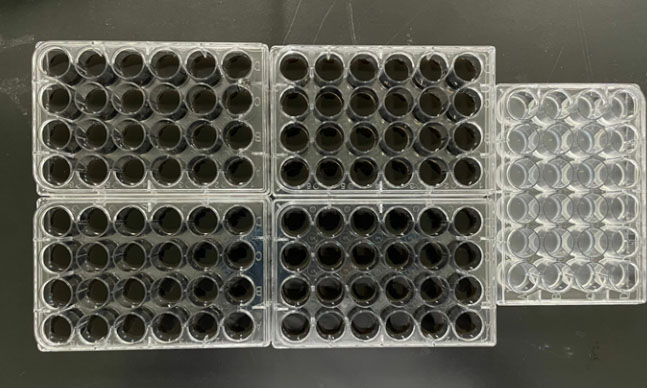 實(shí)驗(yàn)開始前,團(tuán)隊(duì)同學(xué)通過以“水凝膠”、“多功能”、“復(fù)合”等為關(guān)鍵詞,組合查詢2014年1月-2024年1月在中國知網(wǎng)、萬方數(shù)據(jù)、Web of science等數(shù)據(jù)庫中的相關(guān)文獻(xiàn),對(duì)水凝膠的發(fā)展現(xiàn)狀進(jìn)行前沿追蹤。實(shí)驗(yàn)開始時(shí),團(tuán)隊(duì)同學(xué)設(shè)計(jì)構(gòu)建試驗(yàn)方案,積極投入實(shí)驗(yàn),并將在實(shí)驗(yàn)中遇到的困難及時(shí)與老師溝通,通過實(shí)驗(yàn)本團(tuán)隊(duì)研制出一種聚多巴胺(PDA)與聚丙烯酰胺(PAAM)通過自由基聚合的方法形成可以實(shí)現(xiàn)光熱療法(PTT)抑菌的復(fù)合水凝膠,并在此基礎(chǔ)上,通過加入Mg2+提高水凝膠光熱反應(yīng)的穩(wěn)定性和重復(fù)性。最后,進(jìn)一步探究了角蛋白對(duì)復(fù)合水凝膠粘附性和生物相容性的影響。