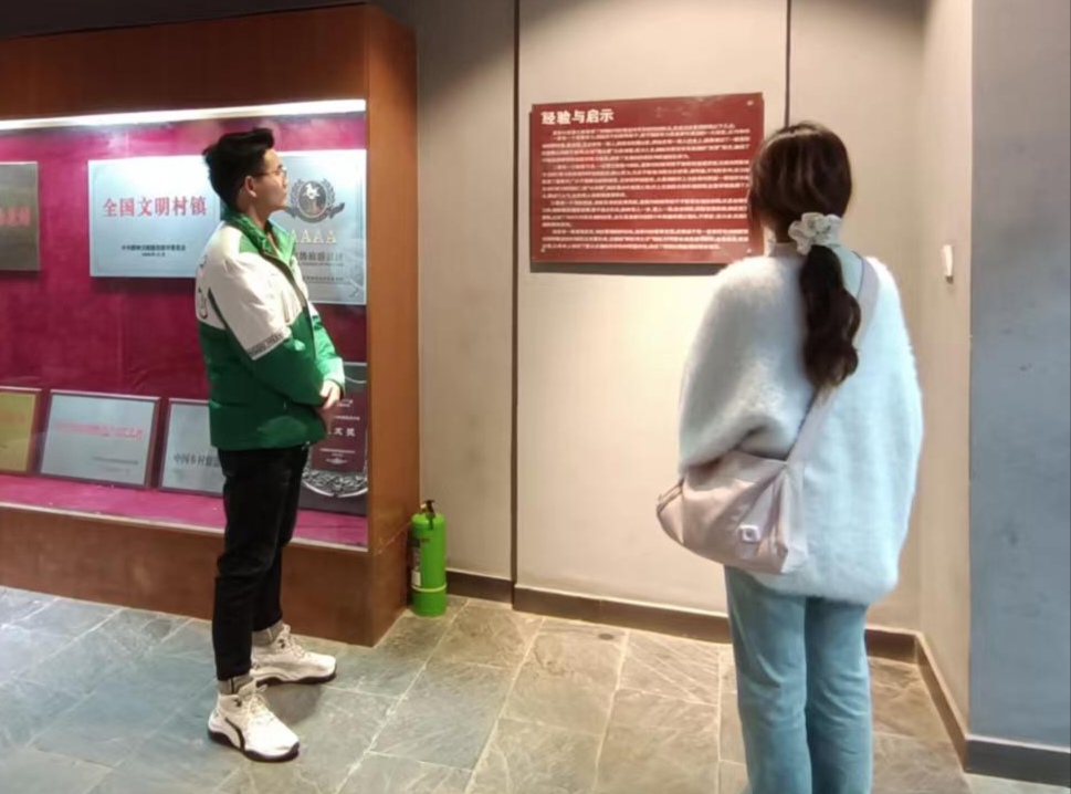 為了進一步了解袁家村的“富村史”,組員們來到了袁家村的村民委員會。同袁家村村口氣派的大門一樣,唯一不同是正中間黨徽標志。接著,組員們又來到了袁家村的村史館。