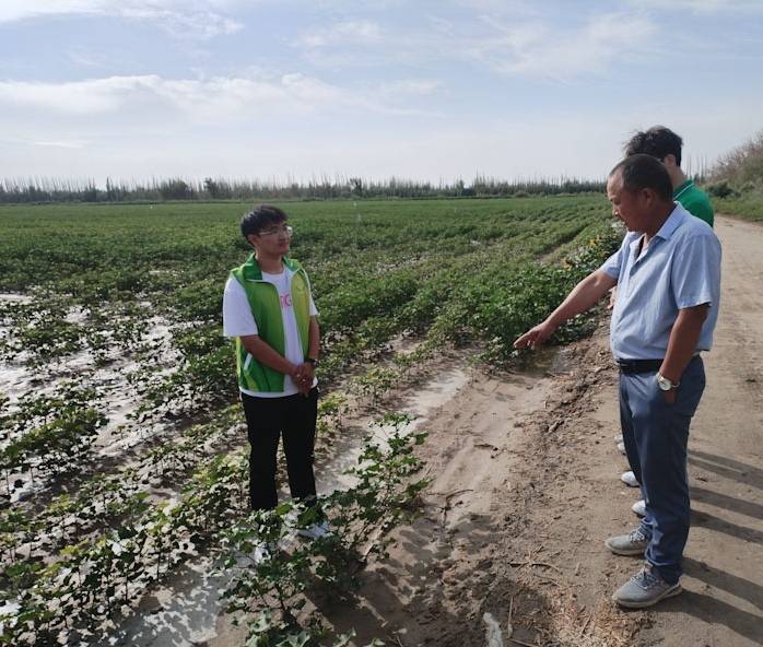 星火實(shí)踐小隊(duì)順利開展實(shí)地調(diào)研活動(dòng)來源:星火實(shí)踐小隊(duì)7月6號上午,星火實(shí)踐小隊(duì)在十二團(tuán)十一連農(nóng)戶張福生的56號棉花地里開展實(shí)地調(diào)研活動(dòng)。