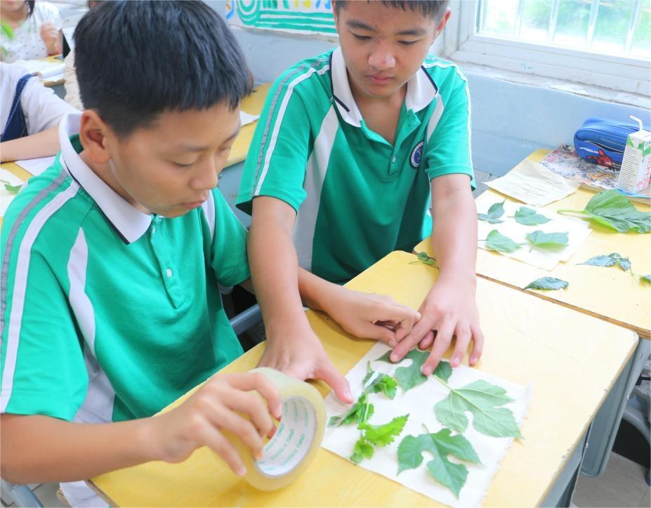 圖為植物拓染課上老師為同學們分發(fā)材料。中國青年網(wǎng)通訊員 何昊澤攝