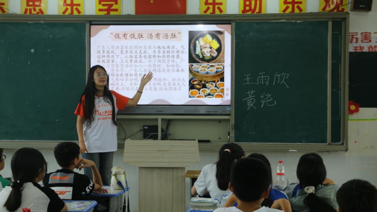 圖為支教老師講解《美食地理》課程。通訊員 李志軒 攝