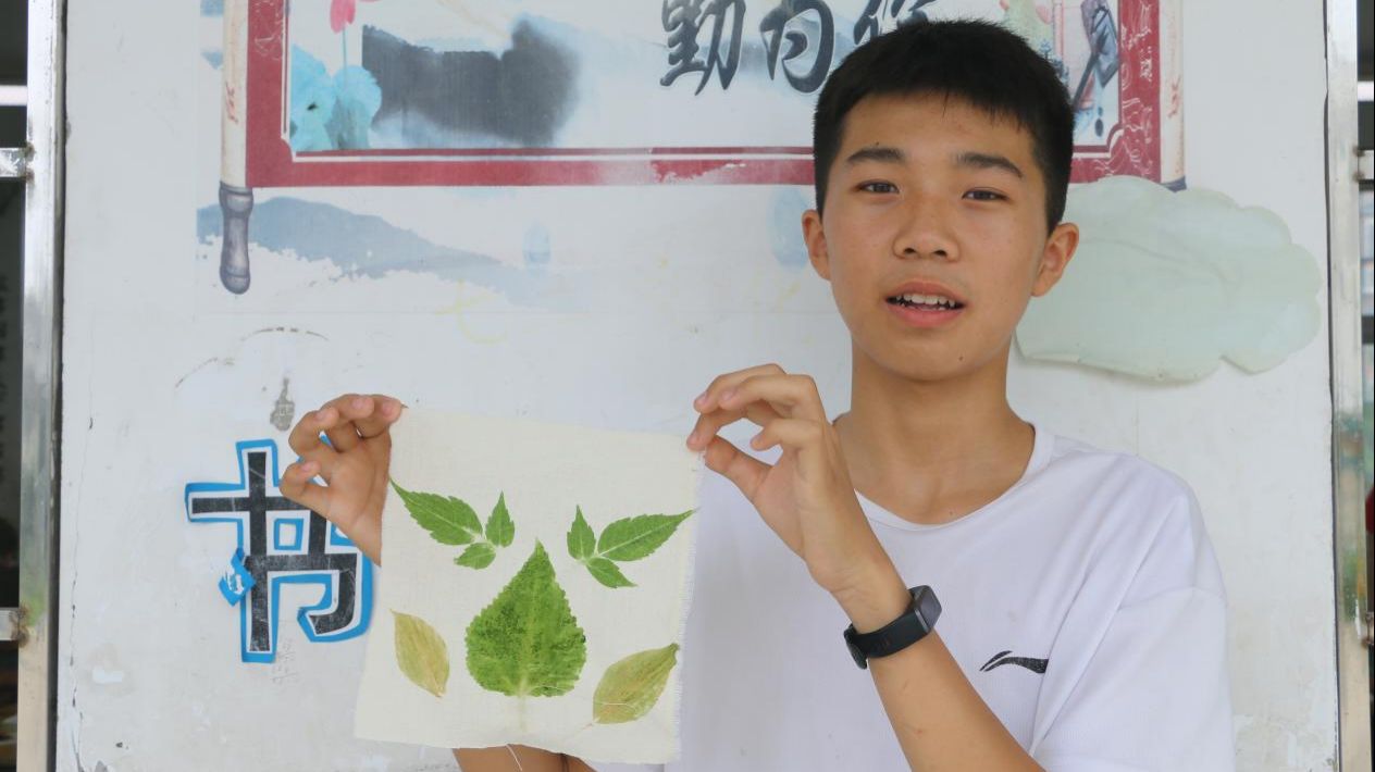 在最受學生歡迎的《植物拓染非遺手工課》上,自然之美與傳統(tǒng)文化被巧妙結合,支教老師帶領學生們親手制作,將植物的脈絡與紋路永久定格在畫布上,體驗了一次非遺文化的獨特魅力。