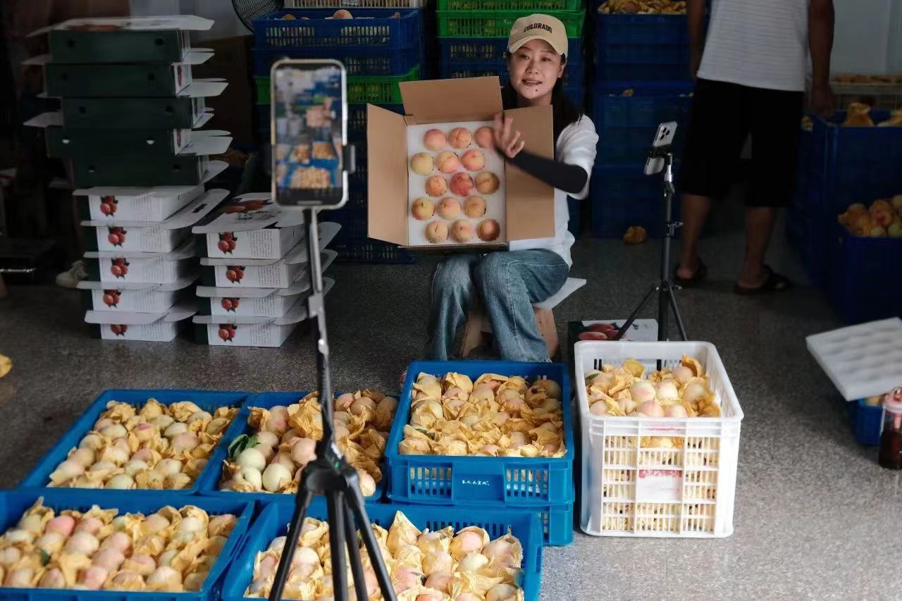 小隊對初步計劃的多種銷售渠道及可實現(xiàn)的供貨方式等想法進行了深入討論,基本掌握了近期上市的水蜜桃的品質(zhì)、產(chǎn)量、銷售狀況等信息,完善了助銷水蜜桃計劃和“產(chǎn)供銷”流程。從抖音平臺的帶貨直播中汲取經(jīng)驗后,小分隊成員們積極協(xié)助農(nóng)戶進行直播,進一步優(yōu)化直播環(huán)節(jié),克服了直播畫面卡頓、環(huán)節(jié)銜接不暢等多個難點。