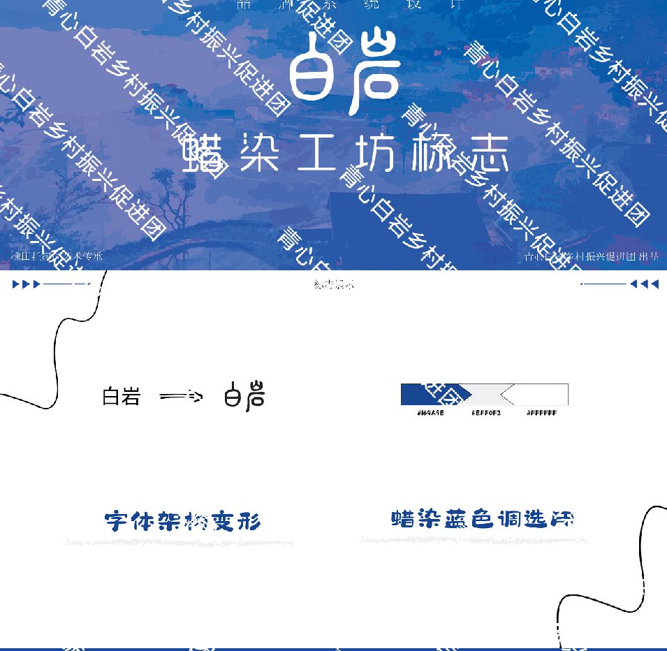 為了進(jìn)一步助力鄉(xiāng)村旅游業(yè),除了大米包裝袋的設(shè)計(jì),團(tuán)隊(duì)還設(shè)計(jì)了白巖村蠟染工坊標(biāo)志,并為蠟染工坊制作了宣傳展板,宣傳展牌上,蠟刀與染料桶的生動(dòng)形象吸引著過(guò)往行人的目光,讓人不禁想要親身體驗(yàn)一番這項(xiàng)古老的技藝。同時(shí),團(tuán)隊(duì)還配套設(shè)計(jì)了一系列宣傳和實(shí)用物品,一次性水杯與毛氈片的設(shè)計(jì)也融入了蠟染元素,以蠟染的白色為背景,中間鑲嵌著藍(lán)色的白巖logo圖,文創(chuàng)周邊的設(shè)計(jì)落地使用后,可以讓苗族蠟染的元素融入游客的住宿體驗(yàn)中,提高白巖文化的傳播。