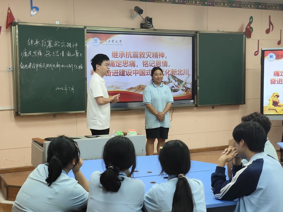 為弘揚偉大的抗震救災(zāi)精神,激發(fā)青少年積極投身中國式現(xiàn)代化新北川建設(shè)的熱情,2024年7月8日,河南工業(yè)大學(xué)“鄭在阿壩·匯流映川”赴川西地區(qū)社會實踐團(tuán)隊于前往北川羌族自治縣七一職業(yè)中學(xué)同上一堂主題為《繼承抗震救災(zāi)精神,痛定思痛,銘記恩情,凝心聚力,奮進(jìn)建設(shè)中國式現(xiàn)代化新北川》的思政課,思政課由河南省“青馬工程”高校班學(xué)員、團(tuán)隊隊長李遠(yuǎn)宏主講,團(tuán)隊全體成員和北川七一職中部分學(xué)生參加。