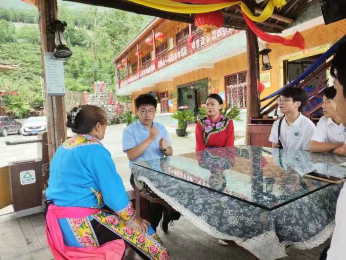 團(tuán)隊(duì)成員與石椅村黨支部副書記陳艷進(jìn)行了深入交流,在交流中團(tuán)隊(duì)成員們了解到,石椅村充分依托特色水果、自然生態(tài)和羌族文化,推進(jìn)基礎(chǔ)設(shè)施建設(shè),發(fā)展鄉(xiāng)村旅游。例如,村里成立了水果專業(yè)合作社,統(tǒng)一管理和銷售;與綿陽市農(nóng)業(yè)科學(xué)研究院合作,提高水果種植技術(shù);開發(fā)柳杉林,打造“林海石源”、茶研綜合體等項(xiàng)目。同時(shí),石椅村依托其豐富的旅游資源和獨(dú)特的民族文化,石椅村開發(fā)了多種旅游產(chǎn)品和服務(wù),如羌族歌舞表演、農(nóng)家樂體驗(yàn)、特色民宿等。這些項(xiàng)目不僅吸引了大量游客前來游玩,也為村民提供了更多的就業(yè)機(jī)會(huì)和收入來源。