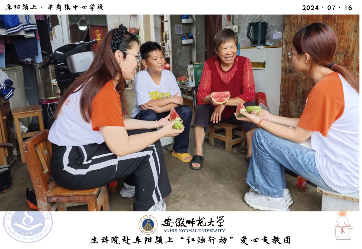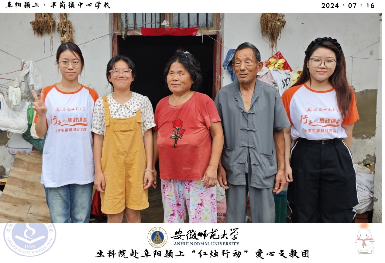 “教育是用一片樹葉搖動另一片樹葉,家訪是用一顆心靈去感動另一顆心靈”。家訪,是學(xué)校與家庭共同教育好孩子的一道不可或缺的橋梁。經(jīng)調(diào)研發(fā)現(xiàn),半崗鎮(zhèn)中心學(xué)校的學(xué)生中有70%學(xué)生是留守兒童,由爺爺奶奶撫養(yǎng)長大,缺乏父母陪伴。為了進(jìn)一步了解這些學(xué)生的生活情況以及其與家長的溝通情況,促進(jìn)家校密切合作,引導(dǎo)家長形成正確的教育觀,關(guān)愛學(xué)生的心理健康,生科院赴阜陽潁上“紅燭行動”愛心支教本科生社會實踐團(tuán)隊于7月16日開展了以“家訪暖人心,共育促成長”為主題的家訪活動。
