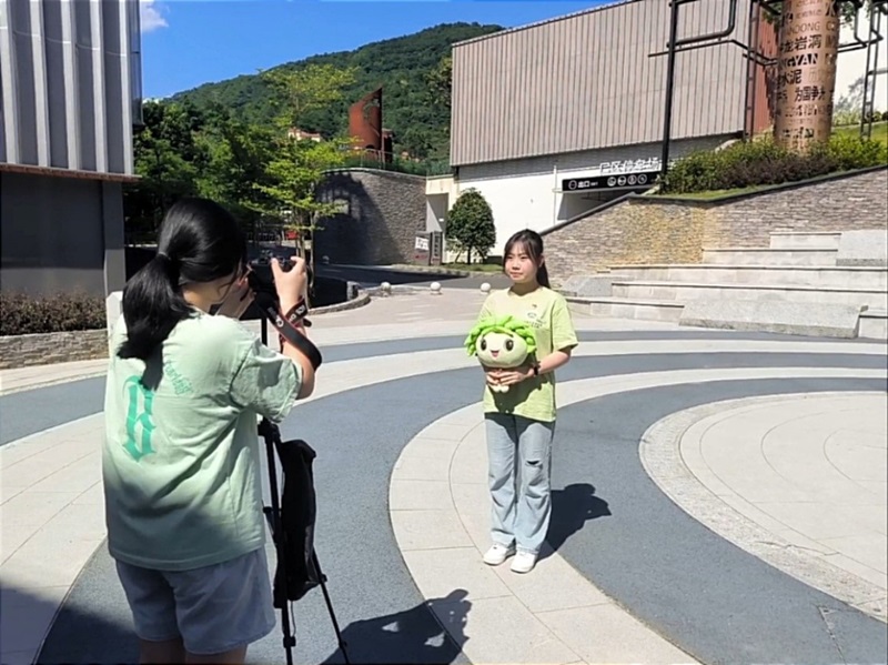圖3為實(shí)踐隊(duì)成員錄制英文解說(shuō)視頻的工作照參觀結(jié)束后,實(shí)踐隊(duì)隊(duì)員充分發(fā)揮英語(yǔ)專業(yè)優(yōu)勢(shì),精心制作了一系列高質(zhì)量的英文宣傳視頻。視頻中,隊(duì)員們巧妙地融合了詳實(shí)的歷史資料與生動(dòng)的現(xiàn)場(chǎng)敘述,用流暢而富有感染力的英語(yǔ)介紹了龍巖洞的工業(yè)歷史背景及在生態(tài)文明建設(shè)中的轉(zhuǎn)變與成就。此外,實(shí)踐隊(duì)隊(duì)員們還在龍巖洞公園周邊地區(qū)進(jìn)行了廣泛的入戶宣傳活動(dòng),通過(guò)發(fā)放宣傳手冊(cè)、志愿服務(wù)等形式,讓更多龍巖市民關(guān)注龍巖洞的保護(hù)與開(kāi)發(fā)工作。