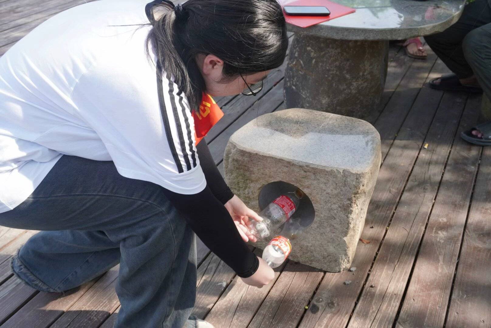 圖4為實踐隊成員進行垃圾清潔活動 言映幕,話莆田除以上活動形式之外,外語“河小禹”們還充分發(fā)揮英語專業(yè)的優(yōu)勢,在現(xiàn)場錄制了英文宣傳視頻。視頻中詳細介紹了莆田河流治理的故事,激發(fā)更多的人關(guān)注和參與保護母親河的熱情。