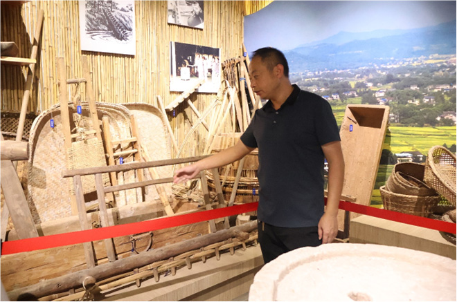 實踐團與黃主任在花橋鎮(zhèn)農(nóng)耕文化展示館合影