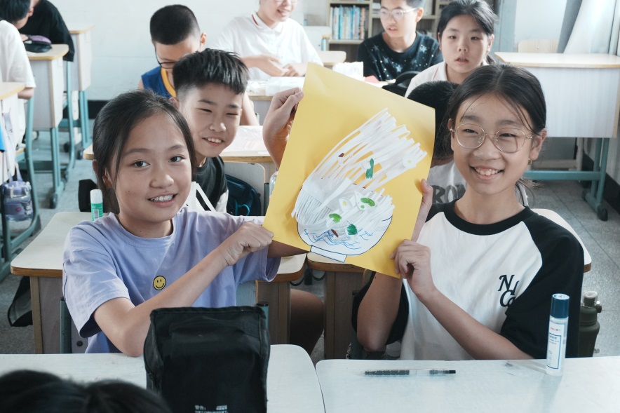 經(jīng)過一番精心的創(chuàng)作,一幅幅生動有趣的豬臟粉剪拼畫呈現(xiàn)在大家眼前。孩子們興奮地展示自己的作品,講述著創(chuàng)作中的想法和特點,分享著對豬臟粉的喜愛與感悟。在歡聲笑語中,這堂別開生面的美育課程圓滿落幕,但孩子們對家鄉(xiāng)美食的熱愛和對傳統(tǒng)文化的傳承卻永遠不會結束。