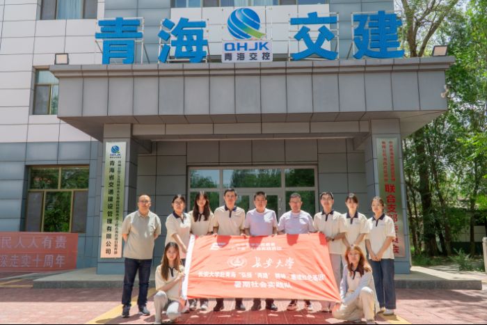 圖為實(shí)踐隊(duì)與青海省交通建設(shè)管理有限公司合影