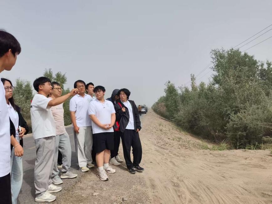 在種樹防沙、果樹修剪實踐活動中,實踐團成員們更是熱情高漲。在企業(yè)工人管理員李軍昌老先生的耐心講解與指導(dǎo)下,大家分工協(xié)作,有的挖坑、有的扶樹、有的澆水、有的修枝,每一個環(huán)節(jié)都一絲不茍。盡管天氣炎熱,但成員們的熱情絲毫未減,他們用實際行動為當(dāng)?shù)氐姆郎持紊彻ぷ髫暙I著自己的一份力量。在勞動過程中,鄭總經(jīng)理還向大家講解了種樹防沙的技巧和重要性,讓成員們深刻認識到防沙治沙對于改善當(dāng)?shù)厣鷳B(tài)環(huán)境、保障農(nóng)業(yè)生產(chǎn)的關(guān)鍵作用。