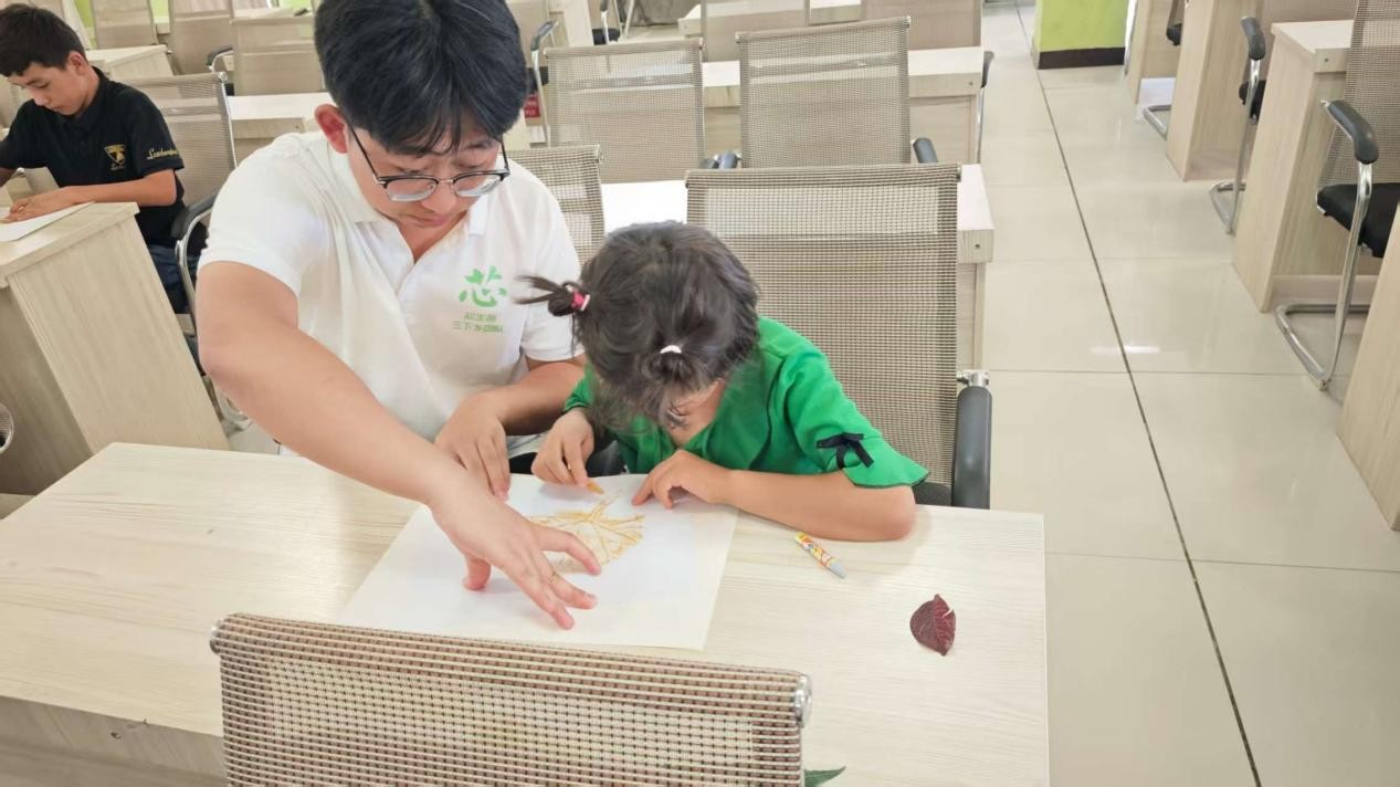 隨后,志愿者和孩子們一起開(kāi)展手工樹(shù)葉拓印活動(dòng)。孩子們?cè)谥驹刚叩闹笇?dǎo)下,充分發(fā)揮想象力和創(chuàng)造力,將一片片普通的樹(shù)葉變成了一幅幅精美的藝術(shù)作品。通過(guò)這個(gè)活動(dòng),孩子們不僅提高了動(dòng)手能力,還對(duì)大自然有了更深刻的認(rèn)識(shí)和熱愛(ài)。