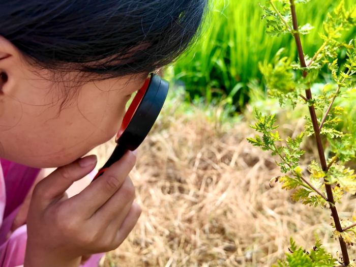 圖為學(xué)生手持放大鏡觀察植物